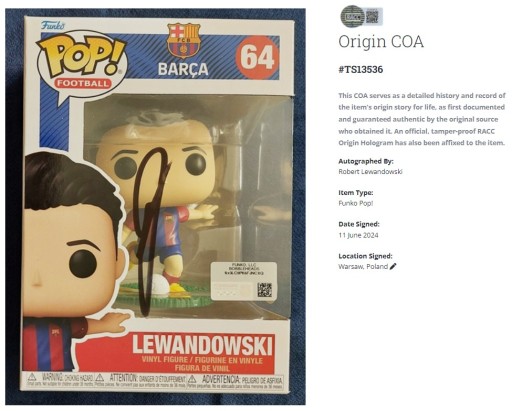 РОБЕРТ ЛЕВАНДОВСКИ Funko POP Football АВТОГРАФ ФК БАРСЕЛОНА + СЕРТИФИКАТ