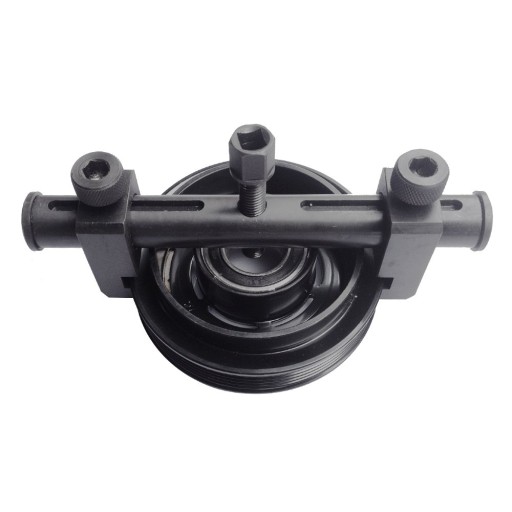 Ściągacz koła pasowego z zębami na nóżkach do dodatkowego chwytania chwyta żebra koła pasowego, a nie krawędź za kołem pasowym.