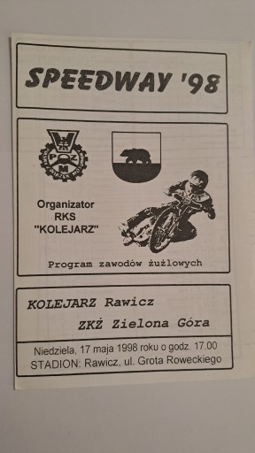 KOLEJARZ RAWICZ - FALUBAZ ZIELONA GÓRA 17-05-1998 - PROGRAM ŻUŻLOWY CZYSTY