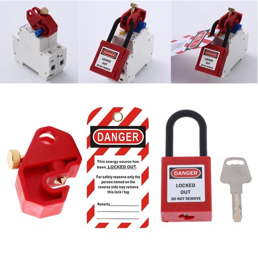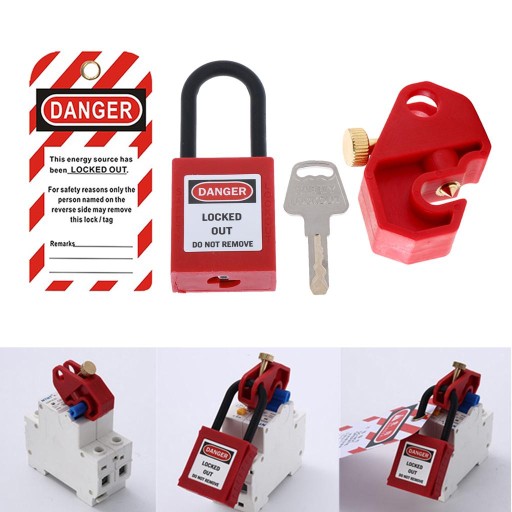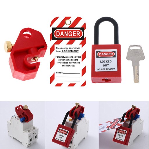 Zestaw 3 sztuk blokady wyłącznika automatycznego, zestaw urządzeń bezpieczeństwa elektrycznego, czerwony CB-01