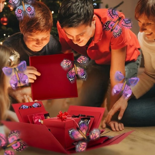 Dodatkowo, nasze wybuchowe pudełka są idealnym uzupełnieniem dla latających motyli. Umieść motyla w pudełku, a po jego otwarciu motyl efektownie wyfrunie, tworząc niezapomniane wrażenie. Wybuchowe pudełka dostępne są na naszej osobnej aukcji na Allegro.