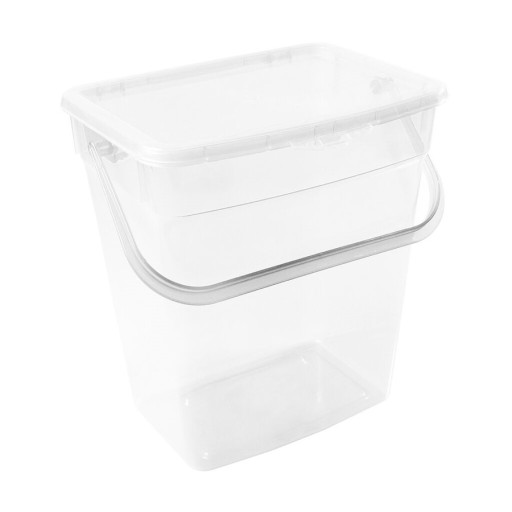 Pokrywka zamykana jest z przodu na mały zatrzask, a uchwyt umożliwia łatwe przenoszenie pojemnika.