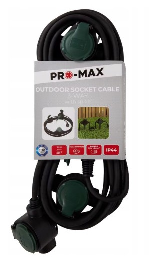 PRZEDŁUŻACZ PROMAX ZEWNĘTRZNY 7.5m 3X1.5mm IP44 CZARNY SZCZELNY 3500W 3 GNIAZDA