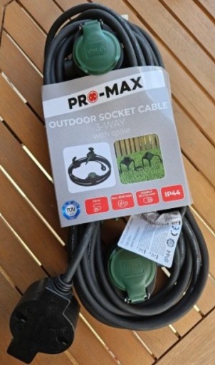 Przy każdym gniazdku znajduje się duży punkt, który można wbić w trawę, aby wystawał na dowolną wysokość. Idealny produkt do podłączenia lampek, kosiarki, nożyc ogrodowych...
