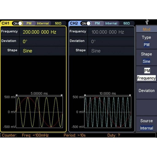 - Liczne opcje modulacji: AM, FM, PM, FSK, 3FSK, PSK, OSK, ASK, BPSK, PWM, Sweep, Burst