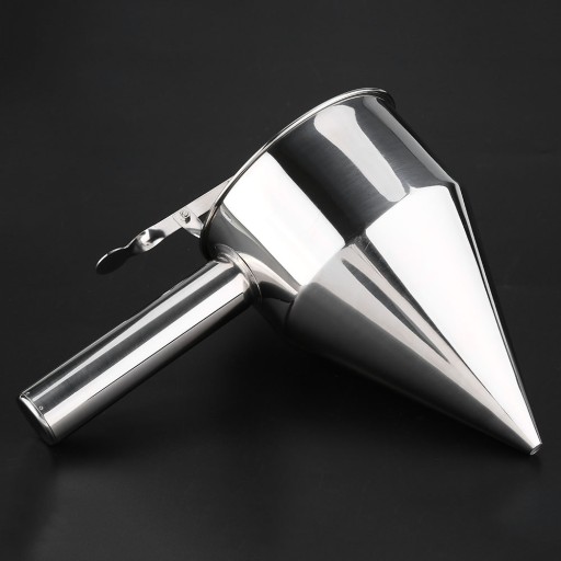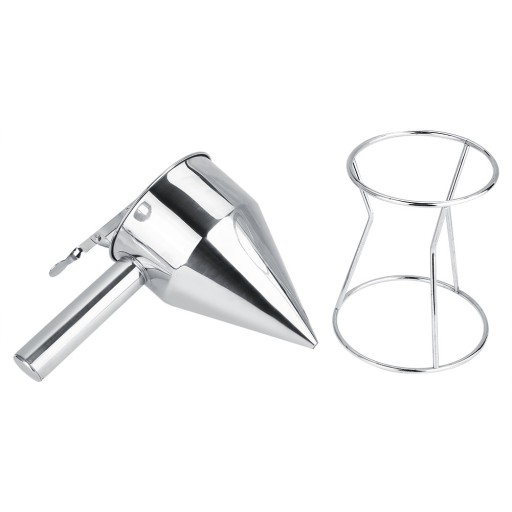 Lejek wykonany jest z metalu ze stali nierdzewnej przeznaczonej do kontaktu z żywnością i charakteryzuje się wykwintnym wykonaniem, zdrowym w użyciu. Powierzchnia ściany lejka została poddana obróbce matowej, co może skutecznie zapobiegać zarysowaniom. Dzięki dodatkowemu stojakowi możesz go łatwo ustawić i zachować porządek w kuchni. Wysokiej jakości praktyczny lejek idealnie sprawdzi się do wypieków, pysznych dań i deserów. Nadaje się do nowoczesnej kuchni hotelowej, cukierni, piekarni, fontanny sodowej, sklepu z sokami i tak dalej.