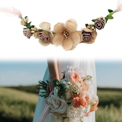Materiał: ręcznie robione PE i jedwabne kwiaty, wstążka, rattan; Sztuczny kwiatek na nadgarstek.