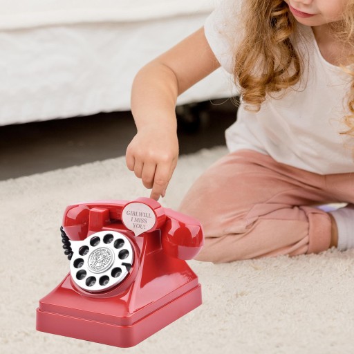 [Funkcja]: Skarbonka w kształcie telefonu w stylu vintage. Port wypłaty pieniędzy na dole jest łatwy w obsłudze i ma wymiary 4,17 x 4,33 x 4,72 cala.