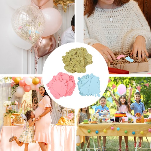 Aby udekorować imprezę tymi konfetti w kształcie odcisków stóp dziecka, doskonale stworzą radosną świąteczną atmosferę. Nadają się do dekoracji w hotelach, restauracjach, ekskluzywnych restauracjach, budynkach biurowych, rezydencjach, barach itp. Wykonane z papieru, bezpieczne i dekoracyjne na twoją imprezę.