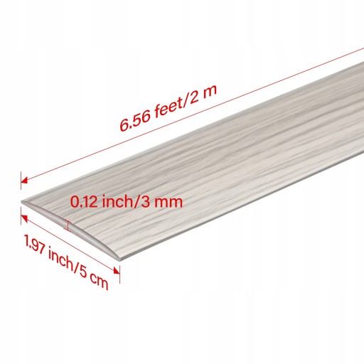 【Materiał PVC】 Listwa przejściowa podłogowa wykonana jest z materiału PVC, elastycznego i wodoodpornego. Ma dobrą odporność na korozję, odporność na ścieranie i antykolizję. Długość: 6,56 stóp/2 m, szerokość: 1,97 cala/5 cm, grubość: 0,12 cala/3 mm.