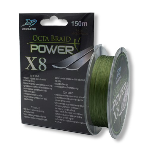 Produkt wysokiej jakości, wykonany z wytrzymałego materiału o bardzo gęstym splocie uniemożliwiający wnikaniu cząstek wody. Miękka i jedwabiście gładka, odporna na uszkodzenia mechaniczne i ścieranie. Nierozciągliwa, pozwalająca na długie i precyzyjne rzuty. Plecionki cieszą się coraz większą popularnością nie tylko w wędkarstwie spinningowym ale również w wędkarstwie gruntowo-feederowym. Zerowa rozciągliwość plecionki skutkuje doskonałą sygnalizacją najdelikatniejszych brań ryb. Należy pamiętać, że stosując plecionki do połowu metodą gruntowo-feederową należy użyć przypon strzałowy wykonany z żyłki o średnicy minimum 0,22 mm. Plecionki 8 splotowe cechują się bardzo dużą wytrzymałością mimo cienkiej średnicy.
