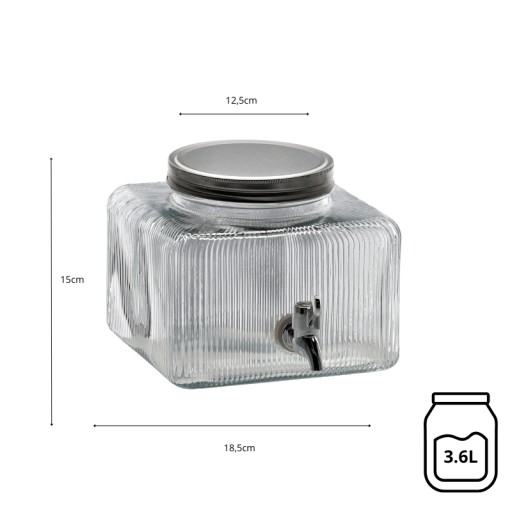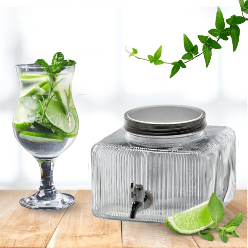 - Słój pomieści 3,6 L wybranego przez Ciebie napoju. Dodatkowo do słoja z łatwością dodasz kostki lodu, owoce lub liście mięty.