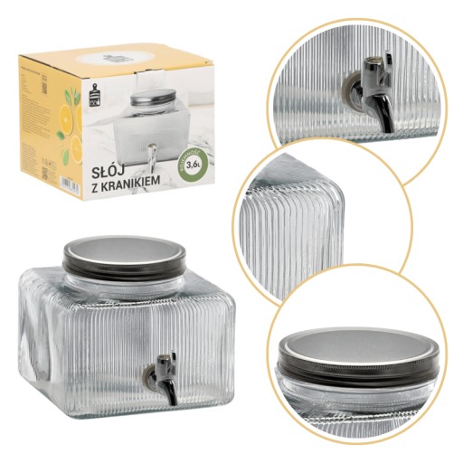 ⭐Słoik z kranikiem słój szklany pojemnik na wodę lemoniadę sok kompot 3,6l⭐