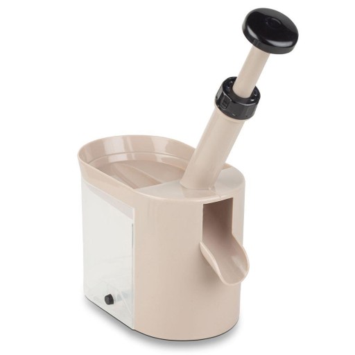 Drylownica z pojemnikiem do wiśni, czereśni, oliwek. Wyposażona w przyssawkę z blokadą, dzięki której nie będzie przesuwała się na blacie. Posiada wyjmowany pojemnik.