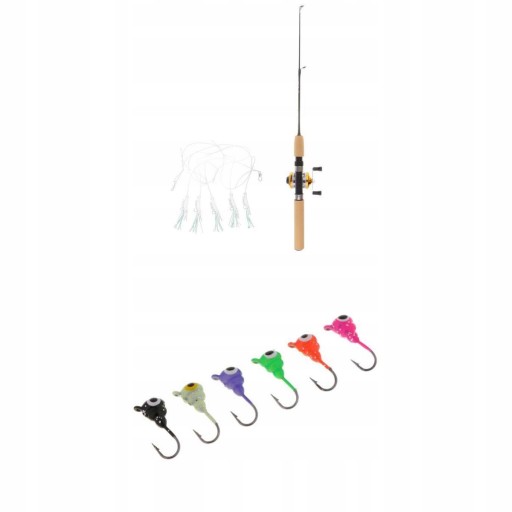 Paczka zawiera: 1 sztuka wędka do łowienia pod lodem 1 sztuka kołowrotek (w tym żyłka) 1 szt. Hak liniowy 6 sztuk przyrządów do łowienia pod lodem