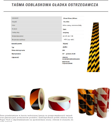 Taśmy służą do wyznaczania stref ostrzegawczych w ciągach komunikacyjnych, oklejania barierek, odbojnic, słupów na parkingach zewnętrznych i podziemnych, halach, magazynach itp.