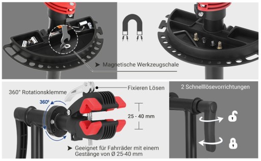Stalowy stojak do naprawy rowerów - maksymalna waga roweru: 25 kg.