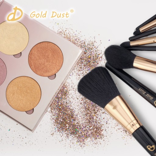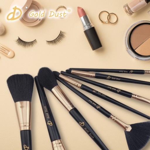Szukasz zestawu pędzli do makijażu, który spełni wszystkie Twoje potrzeby? Zestaw pędzelków GOLD DUST to idealne rozwiązanie dla każdego miłośnika makijażu! Eleganckie połączenie czarnego trzonka z subtelną skuwką w kolorze różowego złota umili Waszą makijażową rutynę, a czarna stylowa tuba z zatrzaskami świetnie sprawdzi się na domowej toaletce jak i w podróży!