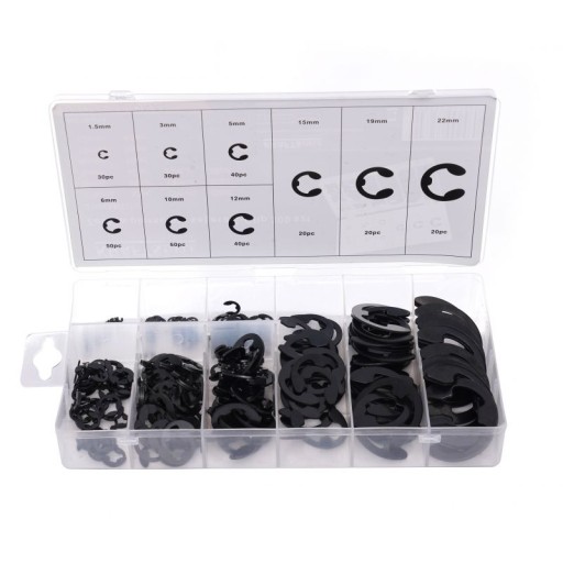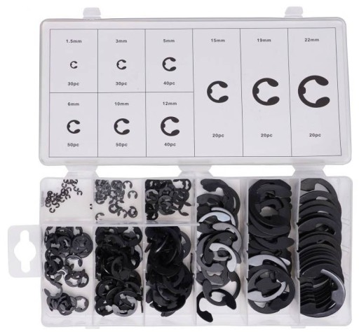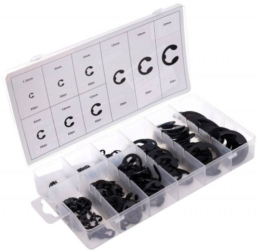 Zestaw do mocowania pierścieni zabezpieczających E-CLIPS 300 szt. - segery, pierścienie, zawleczki, zabezpieczenia