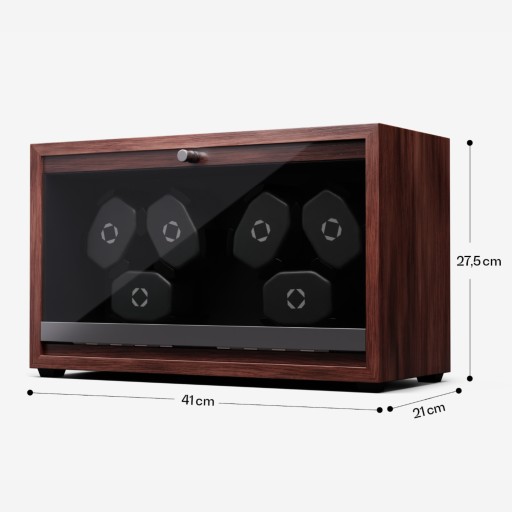 - ELEGANCKI DESIGN: Rotomat zachwyca stylową obudową w kolorze orzecha, która doskonale wpasowuje się w każde wnętrze, dodając mu klasy i elegancji. Rotomat jest wykonany z dbałością o każdy detal, co gwarantuje jego trwałość i niezawodność, a także sprawia, że jest doskonałym dodatkiem do kolekcji zegarków.
