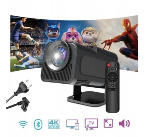 Jasność 10000lm | 390 Ansi | Bluetooth | Full HD | Rozdzielczość 1920 x 1080 | HDMI | Android | Smart Tv | Przekątna obrazu od 30 do 150 cali | Wi-Fi | Nowsza wersja projektora hy300 | Obrotowy |