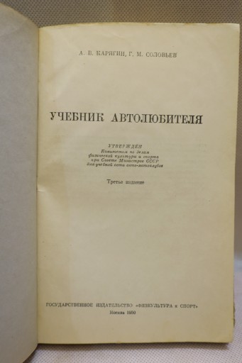 РУКОВОДСТВО АВТОЛЮБИТЕЛЯ СОЛОВЬЕВ КАРЯГИН 1950 г.