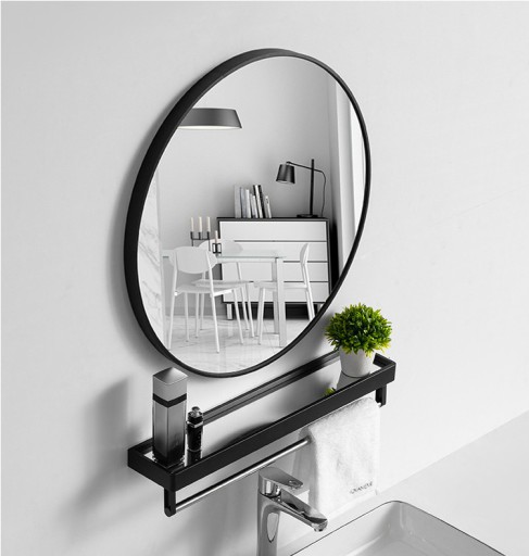 ELEGANCKIE LUSTRO OKRĄGŁE 40 CM W CZARNEJ METALOWEJ RAMIE