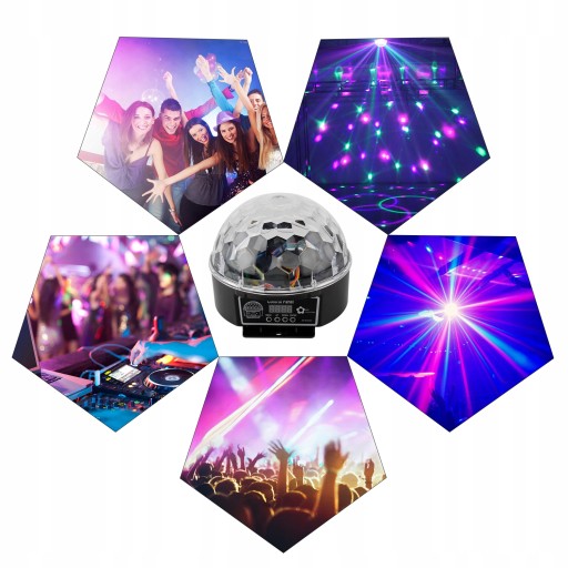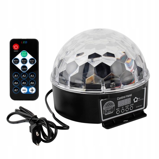 Kula dyskotekowa z wbudowanym odtwarzaczem MP3, czytnikiem kart SD, portem USB oraz wysokiej jakości głośnikami Stereo. Urządzenie jest sterowane przyciskami na panelu bądź z poziomu pilota zdalnego sterowania.