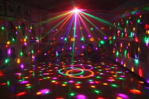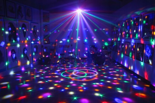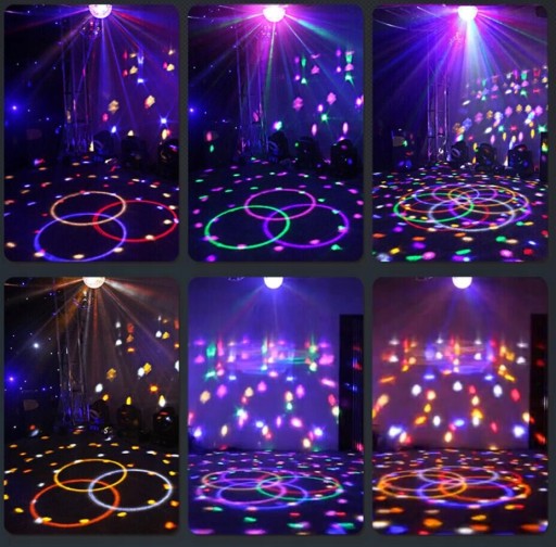 Kula wyposażona została w aż 6 mocnych diod LED o różnych kolorach (czerwony, biały, żółty, fioletowy, zielony i niebieski). Wspaniałe efekty świetlne zapewnia wbudowany silnik, który obraca diody oraz układ sterujący i czujnik dźwięku, co pozwala na miganie diod w rytm odtwarzanej muzyki! Urządzenie potrafi również świecić i wyświetlać wzory bez odtwarzania dźwięku - ich zmiana następuje poprzez wciśnięcie przycisku.