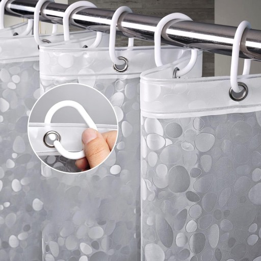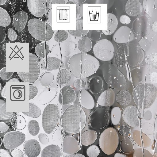 🛁Materiał: Półprzezroczysta zasłona prysznicowa 3D wykonana jest z materiału EVA, wolnego od PCV i BPA. Wysokiej jakości materiał EVA zapewnia działanie przeciw pleśni i antybakteryjne, skutecznie zapobiegając rozwojowi pleśni i bakterii. Półprzezroczysty wzór kamyczków 3D chroni cóż Twoja prywatność.