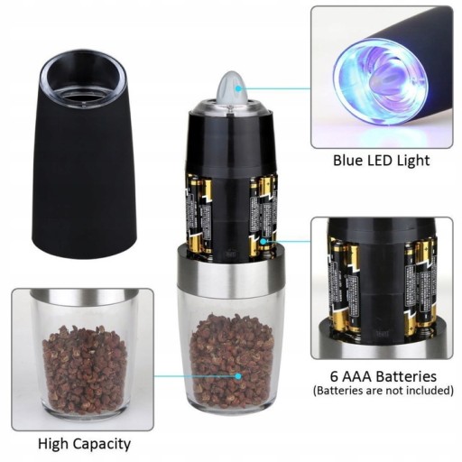 - Zasilanie 6 x baterie AAA do jednego młynka (brak w zestawie)