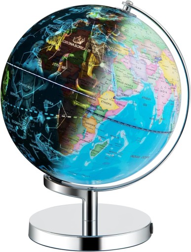 Dzieci mogą odkrywać kolorowy świat w ciągu dnia, a nocą używać globusa jako mapy konstelacji i nocnej lampki.