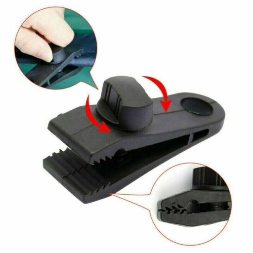 【Przemyślana konstrukcja klipsów】 Kształt ust przypominający przekładnię może mocno ugryźć namiot, a plastikowa śruba może mocno trzymać, nie uszkadzając materiału.