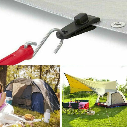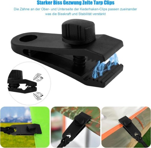 🔗 【Super siła trzymania】 Mocne klipsy do plandeki namiotowej zaprojektowane ze śrubą motylkową do dokręcania szczęk mogą bezpiecznie utrzymać plandekę nawet podczas silnych burz, natomiast klipsy do plandeki basenowej wytrzymują silny wiatr do 60 mil na godzinę.