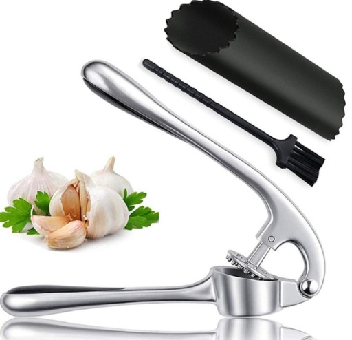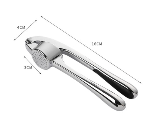 3. Włóż obrany ząbek czosnku do wyciskarki i zamknij rączkę i przeciśnij czosnek przez sitko, wyjdzie rozdrabniacz czosnku.