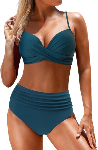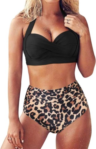 Damski strój kąpielowy z wysokim stanem na fiszbinach, dwuczęściowy strój kąpielowy typu halter z marszczeniami