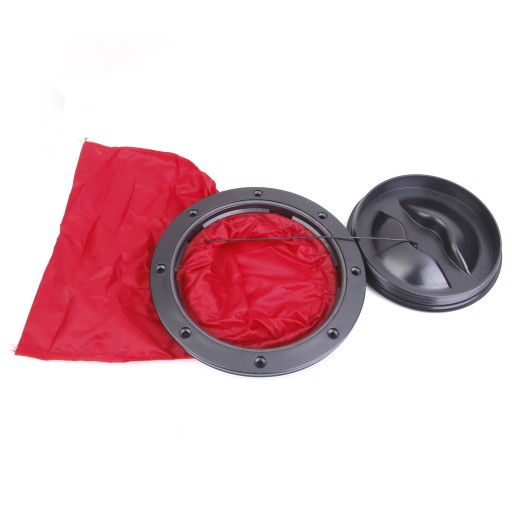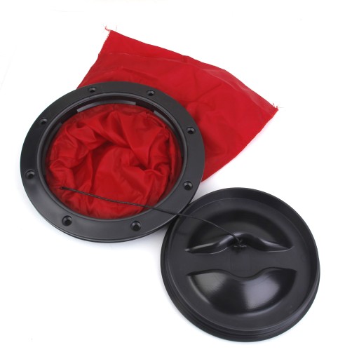 Materiał: PVC ABS : czarny, czerwony Średnica zewnętrzna: około 20,5 cm / 8,1 cala Średnica wewnętrzna: około 15,6 cm / 6,1 cala Wysokość: około 3,8 cm / 1,5 cala Odporny na uderzenia i korozję Wykonany z wysokiej jakości materiału ABS zapewniającego długą żywotność Wygodny w montażu, łatwo wykręca / wykręca Specjalna konstrukcja z czerwoną wodoodporną torbą, większe bezpieczeństwo i przydatność Te pokrywy luków pomagają zmniejszyć uszkodzenia włazu przez promieniowanie , a także zminimalizować światło wpadające do łodzi