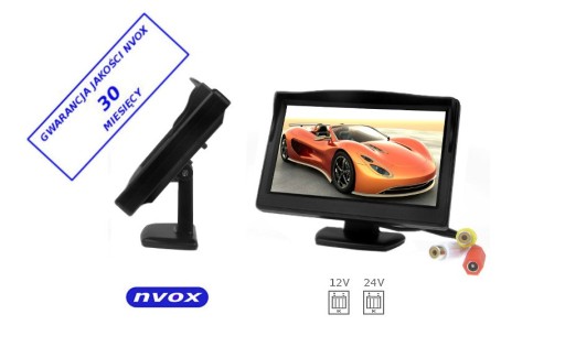 - obsługa 2 urządzeń AV (V1/V2)- może być używany do monitoringu- monitor z regulowaną podstawką (góra-dół)- idealny do podłączenia kamery cofania wyświetlacz TFT 16:9 (Active Matrix System) matryca LCD 5 cali firmy SHARP jasność 300:1, wysoki kontrast 300:1 rozdzielczość 800x480 systemy: PAL pobór mocy 1.5W 2 x wejście Video zasilanie: DC 12V ( opcjonalnie zasilacz DC24V ) wymiary : szer 127mm x wys 85 mm x gr 15mm waga: ok 250 g kolor czarnyw zestawie: - monitor, - okablowanie zasilające, - instrukcja obsługi, - 30 m-cy, - paragon lub
