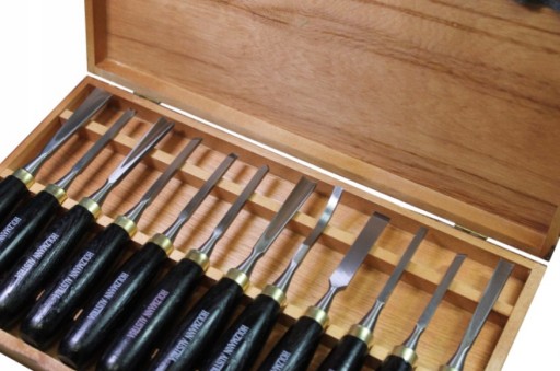 Zestaw dłut dostarczany w drewnianej kasecie .
