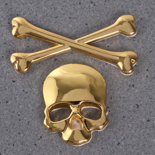 ✅1 * Nowy 3D metalowy szkielet piszczele samochód motocykl naklejka etykieta znaczek z symbolem naklejki do stylizacji samochodów naklejka (złoto)