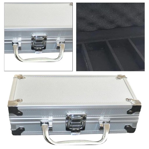 [Materiał]: Pudełko do przechowywania wykonane jest ze stopu aluminium, flaneli wyściełanej gąbką i stylowego zamka.