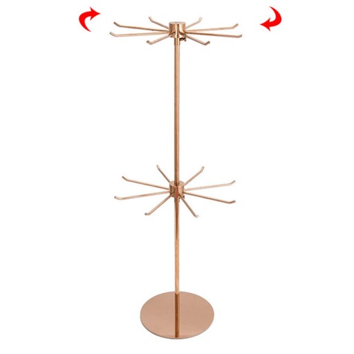 1 szt. Obrotowy stojak na biżuterię Naszyjnik Stojak na kolczyki Wyświetlacz 2 warstwy różowego złota