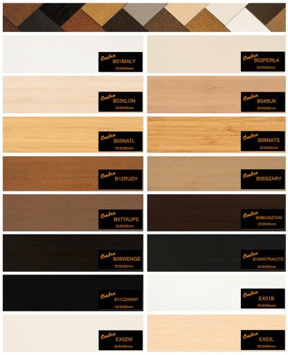 oznaczenia kolorów BO01BIAŁY ... !!! UWAGA !!! Dawne tak popularne STD08 (z miniaturki na czarnych taśmach to teraz B06NATS plus jaśniejsza odmiana tego naturalnego odcienia Bambusa B05NATL )
