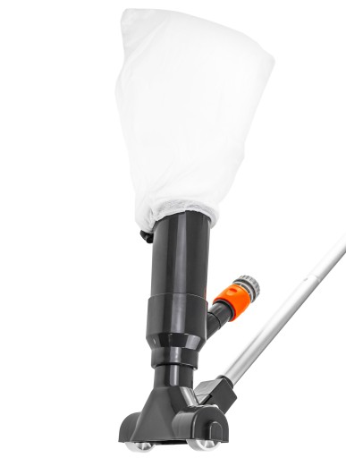 Pod wpływem ciśnienia wody wszelkie nieczystości są zasysane i trafiają wprost do siatki odkurzacza.