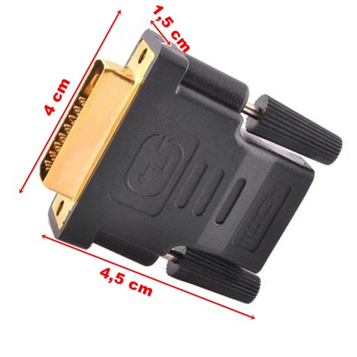 Przejściówka z gniazda HDMI (żeńskie) na wtyczkę DVI-D 24+1 (męskie) lub odwrotnie z DVI-D 24+1 (męskie) na gniazdo HDMI (żeńskie). Adapter zapewnia połączenie telewizora z wejściem HDMI do gniazda DVI-D w komputerze. Adapter potrafi połączyć komputer z wyjściem HDMI z monitorem posiadającym gniazdo DVI-D. Złącza HDMI i DVI-D przesyłają tylko sygnał cyfrowy. Rozdzielczość obrazu przesyłana przez złączkę to 1080p