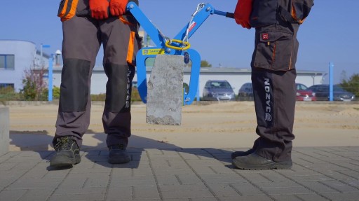 Zawieszany chwytak uniwersalny CHUZ marki Jazon sprawdzi się podczas przenoszenia i ustawiania elementów betonowych - usprawni on proces układania krawężników prostych i obrzeży.