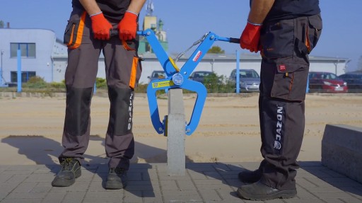 - Płynna regulacja szerokości chwytaka – dzięki tej funkcji można go dostosowywać do różnych rozmiarów krawężników i bloków betonowych.