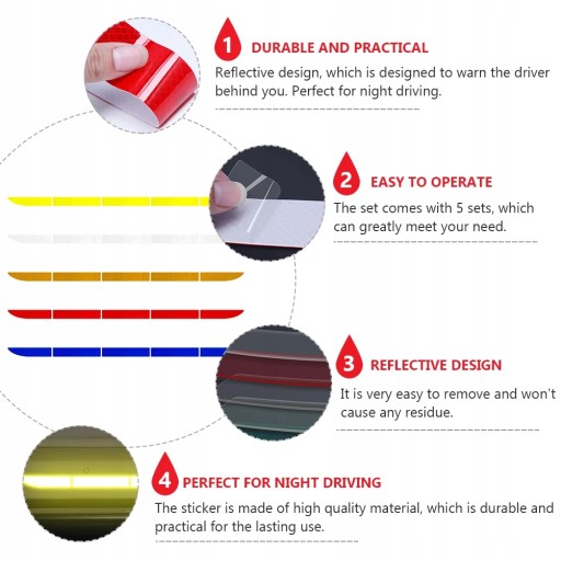 5 x zestaw nocnych naklejek odblaskowych na samochód