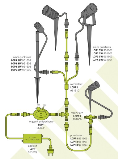Rozdzielacz do systemu oświetlenia ogrodowego typu T.