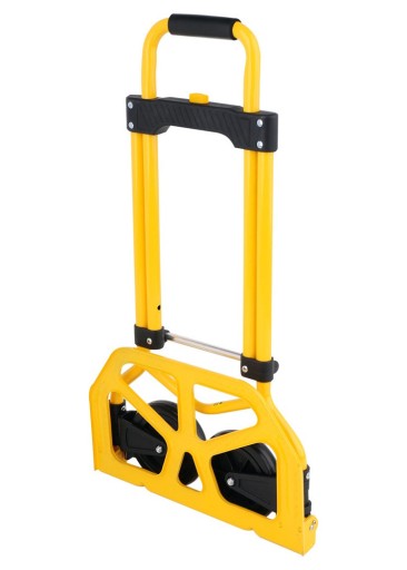 Teleskopowy uchwyt z centralnym układem blokującym po rozłożeniu osiąga długość całkowitą 960mm co pozwala na ergonomiczny transport bez nadmiernego wysiłku. Dodatkowo zamontowana stabilna sztanga poprzeczna znacznie ułatwia podnoszenie ładunku. Istotną zaletą tego wózka jest jego kompaktowa budowa.